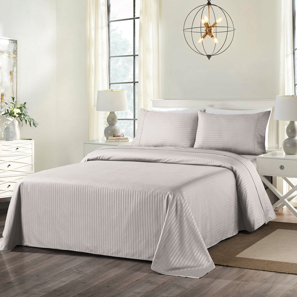Royal Comfort Cooling Bamboo Blend Sheet Set Striped 1000 Thread Count Pure Soft - Double - Silver Grey