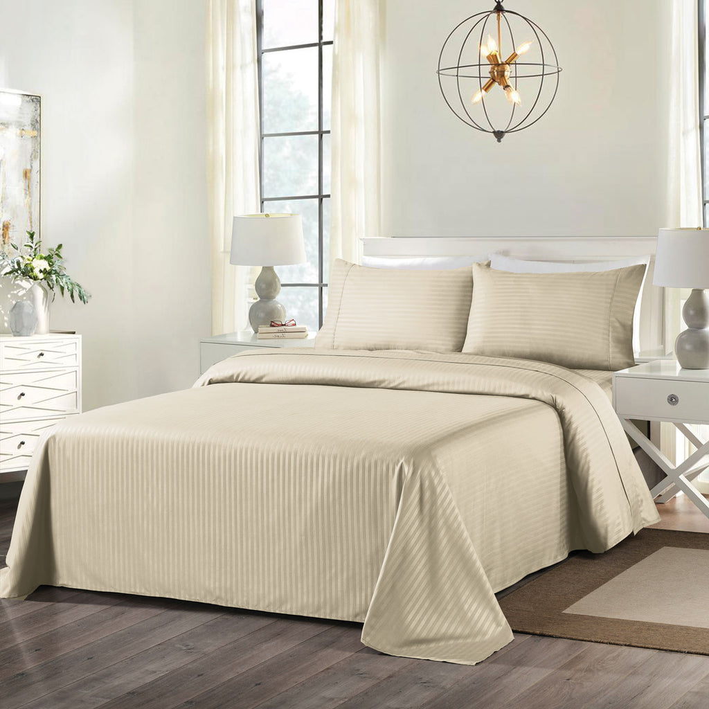 Royal Comfort Cooling Bamboo Blend Sheet Set Striped 1000 Thread Count Pure Soft - King - Sand