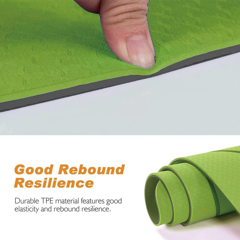 Upgraded Eco & Skin Friendly Material - TPE is the latest technological improvement to traditional yoga mats. Tested and certified by SGS, this mat doesn't contain PVC, latex or any harmful materials.TPE material offers higher density, durability and resilience compared to NBR and PVC YOGA MATS. Safe yoga mat for men, women, girls, kids, etc.