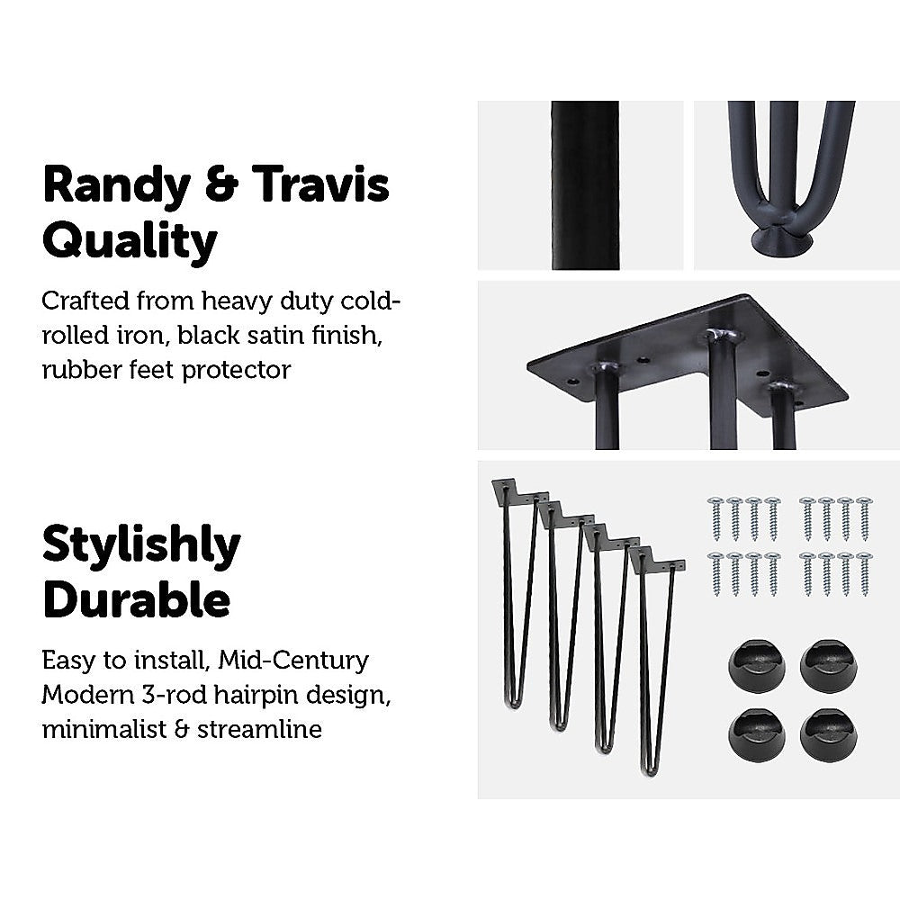If you are an avid DIYer or a professional carpenter, these hairpin table legs by Randy & Travis Machinery make the perfect finishing touch for your next table. Whether you're refurbishing a vintage find or are building your own table, these 406mm legs are just the right size for coffee tables, coffee bars, or side tables for your bedside or living room.