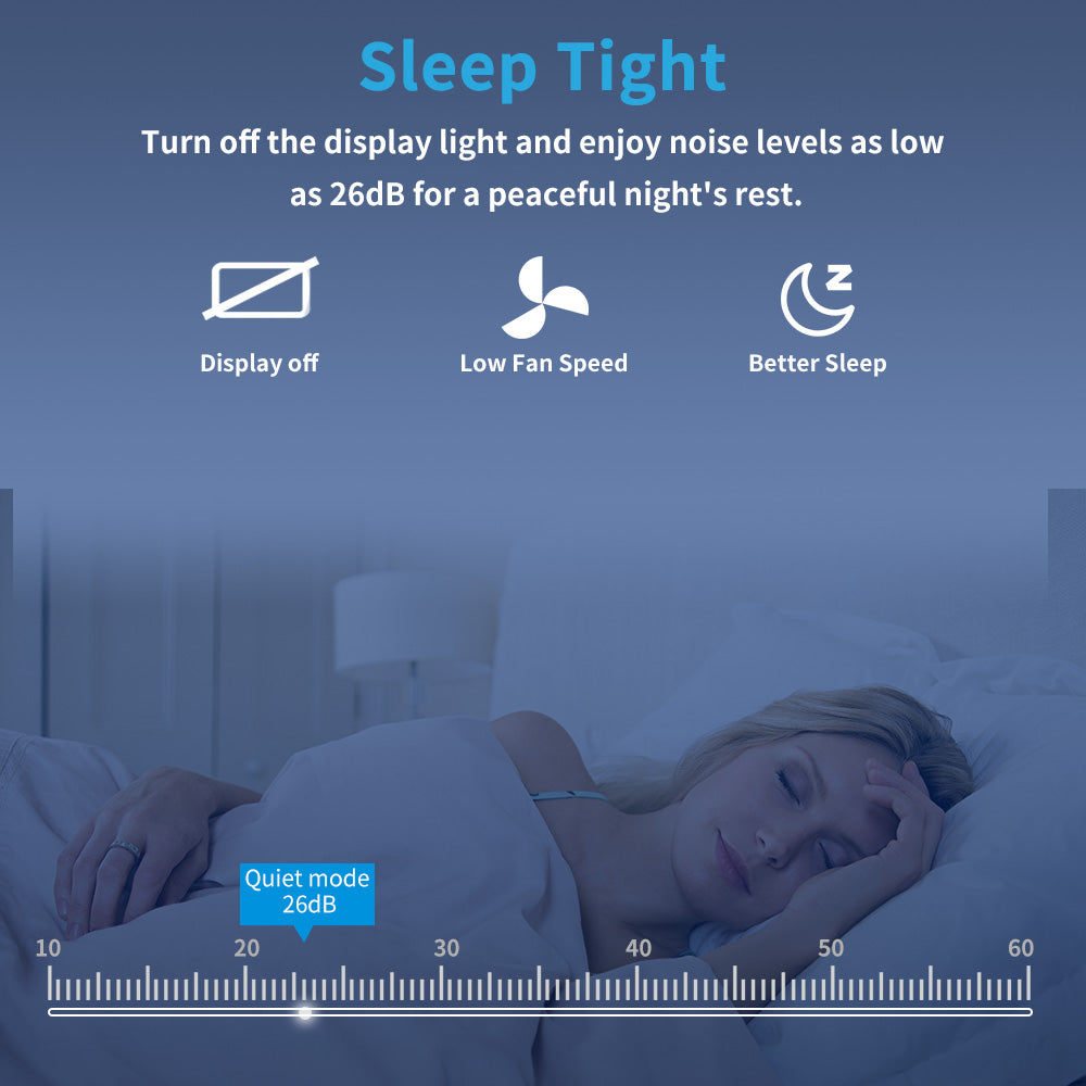 Sleep Mode - Filter the air with a noise level of 26 dB for a restful and soothing indoor environment, help you sleep deeply. The quiet operation makes it perfect for use in bedrooms, living rooms and offices up to 20 - 50㎡.