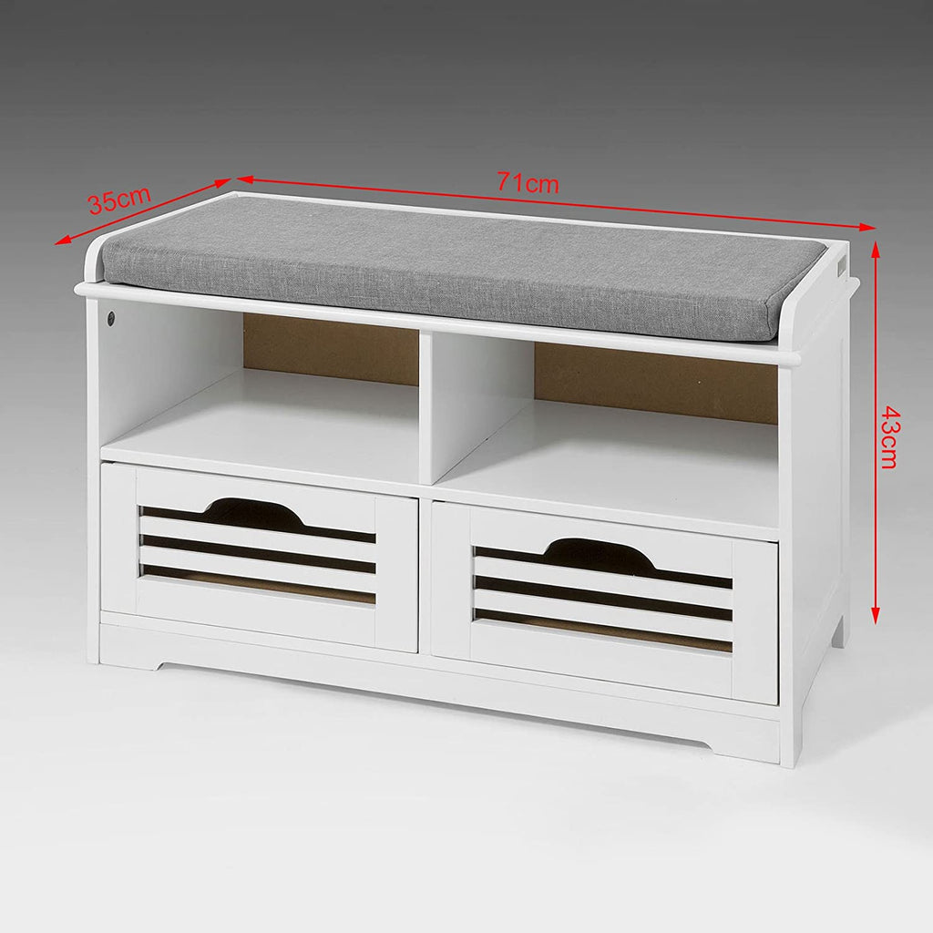 Padded shoe bench with 2 drawers and shelves, ideal for hallway, locker room, bedroom and etc.