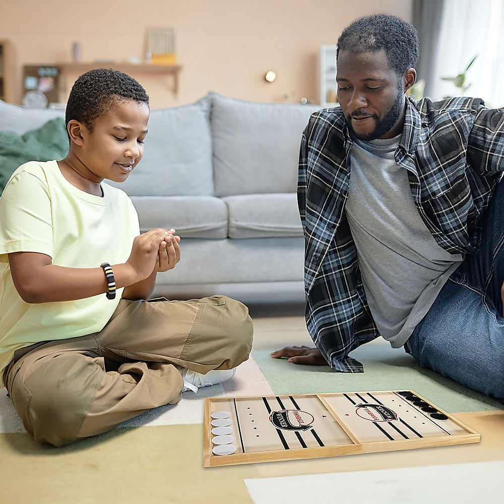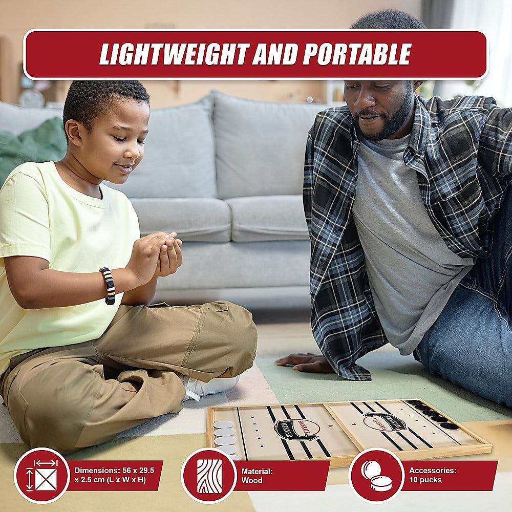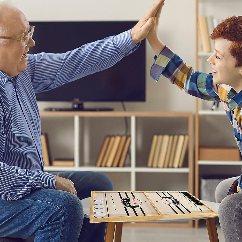 This game is easy to learn – even beginners can get up to speed in minutes. Just use a single finger to pull back the inset elastic band to shoot all the pucks into your opponent's court. The winner of each round is the first player to get all their pucks into your opponent's court. The first player to win two rounds wins the game. You don't need to take turns – you just keep shooting until all your pucks are on the other side. It's a lot like the ever-popular foosball, but in a hockey setting. It's an excellent gift for the table game lover in your life.