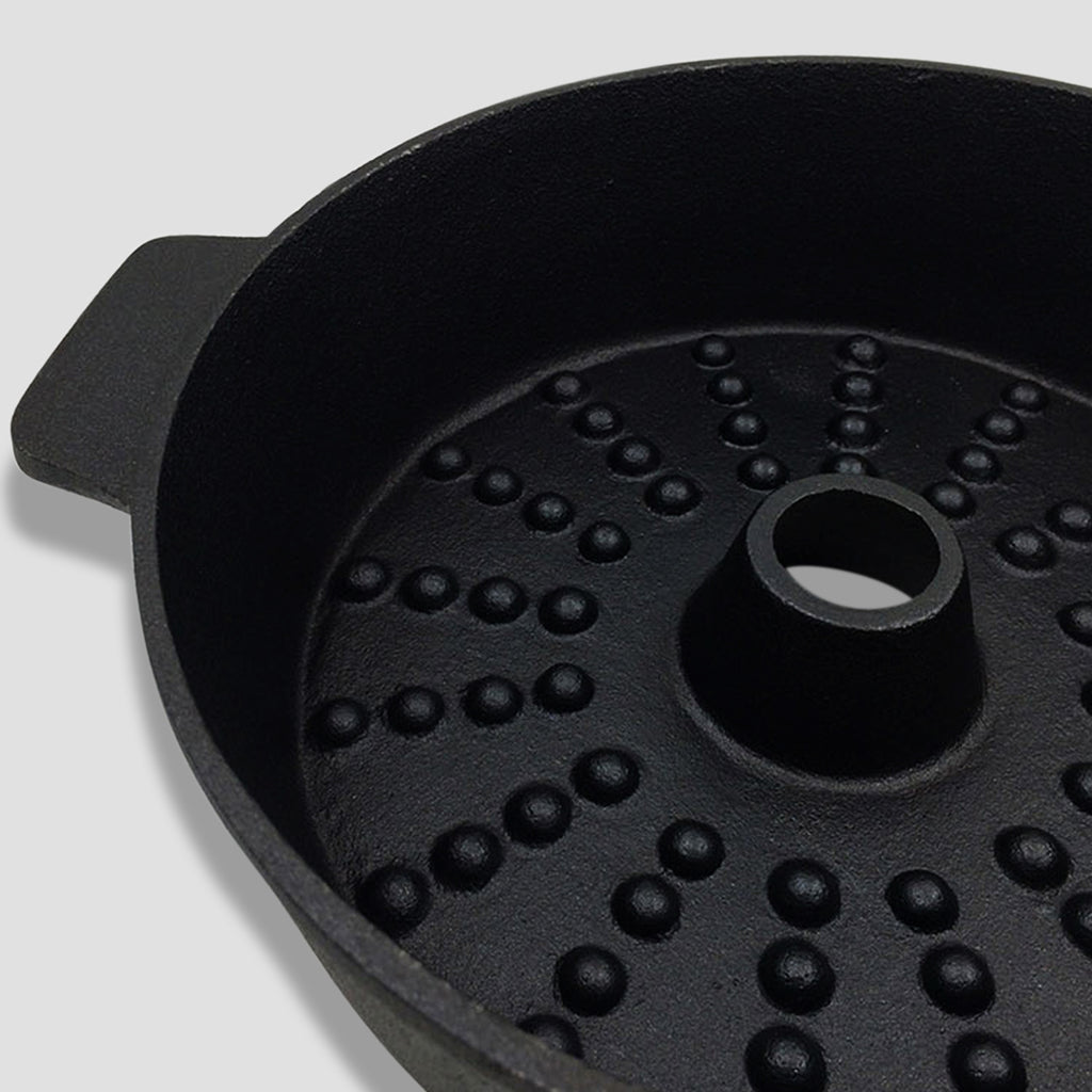 - Rugged cast iron has great heat distribution and retention for slow and even cooking