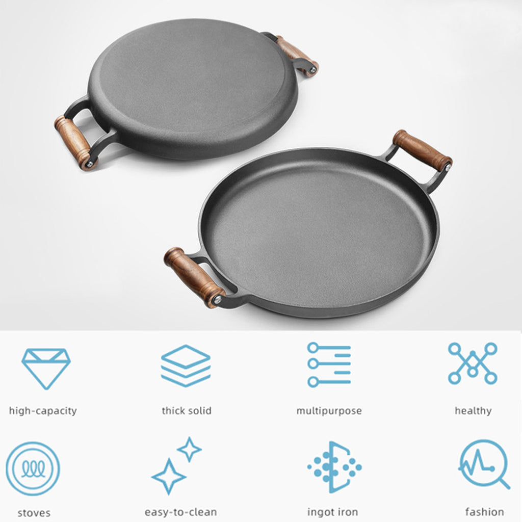 - Round Ribbed Cast Iron Sizzle Pan provides exceptional heat retention and distribution