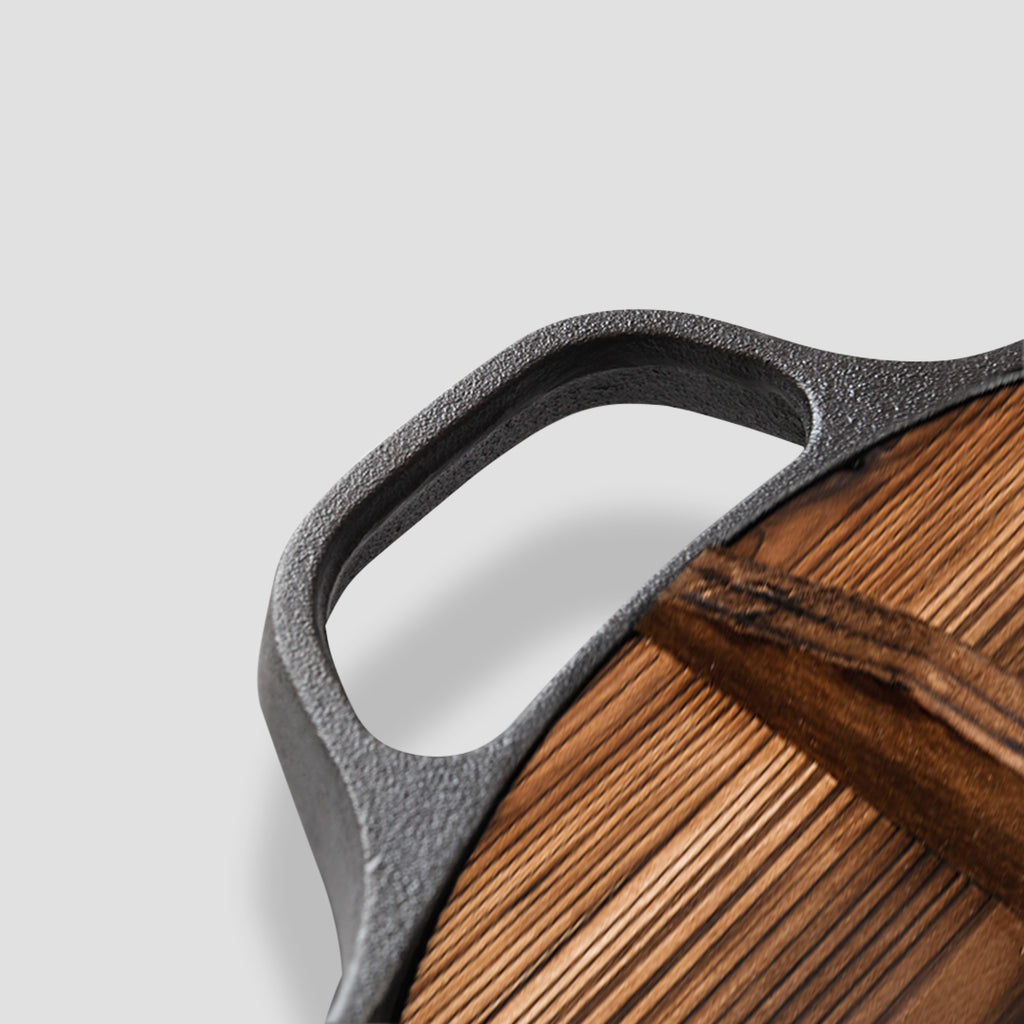 - SOGA Cast Iron Pre-seasoned Deep Pan is made out of cast iron material, durable, and long-lasting cooking ware.