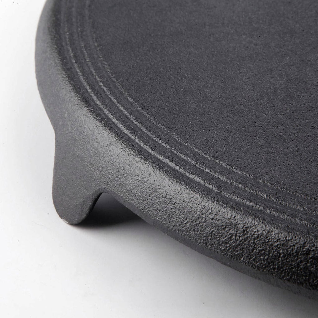 - Made from durable cast iron, popular because of its ability to evenly conduct heat, crepes, pancakes or pizzas will always be cooked evenly - right to the center