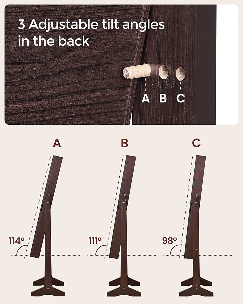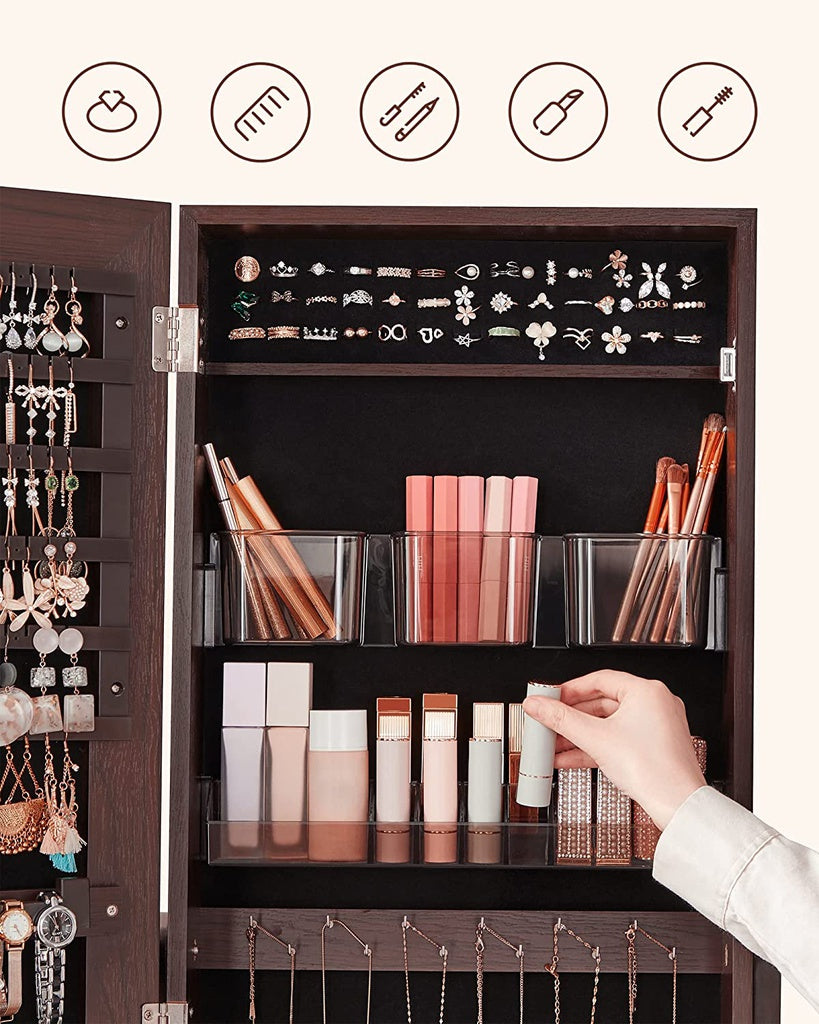 A Place Make Your Jewelry Feel at Home: Don't leave your cosmetics and jewelry messed up in drawers or at the mercy of dust! This jewelry mirror cabinet displays them like they're in a showcase, and the lockable design with 2 keys protects them both from dust and prying hands. They'll immediately feel at ease in this safe and refined jewelry cabinet!