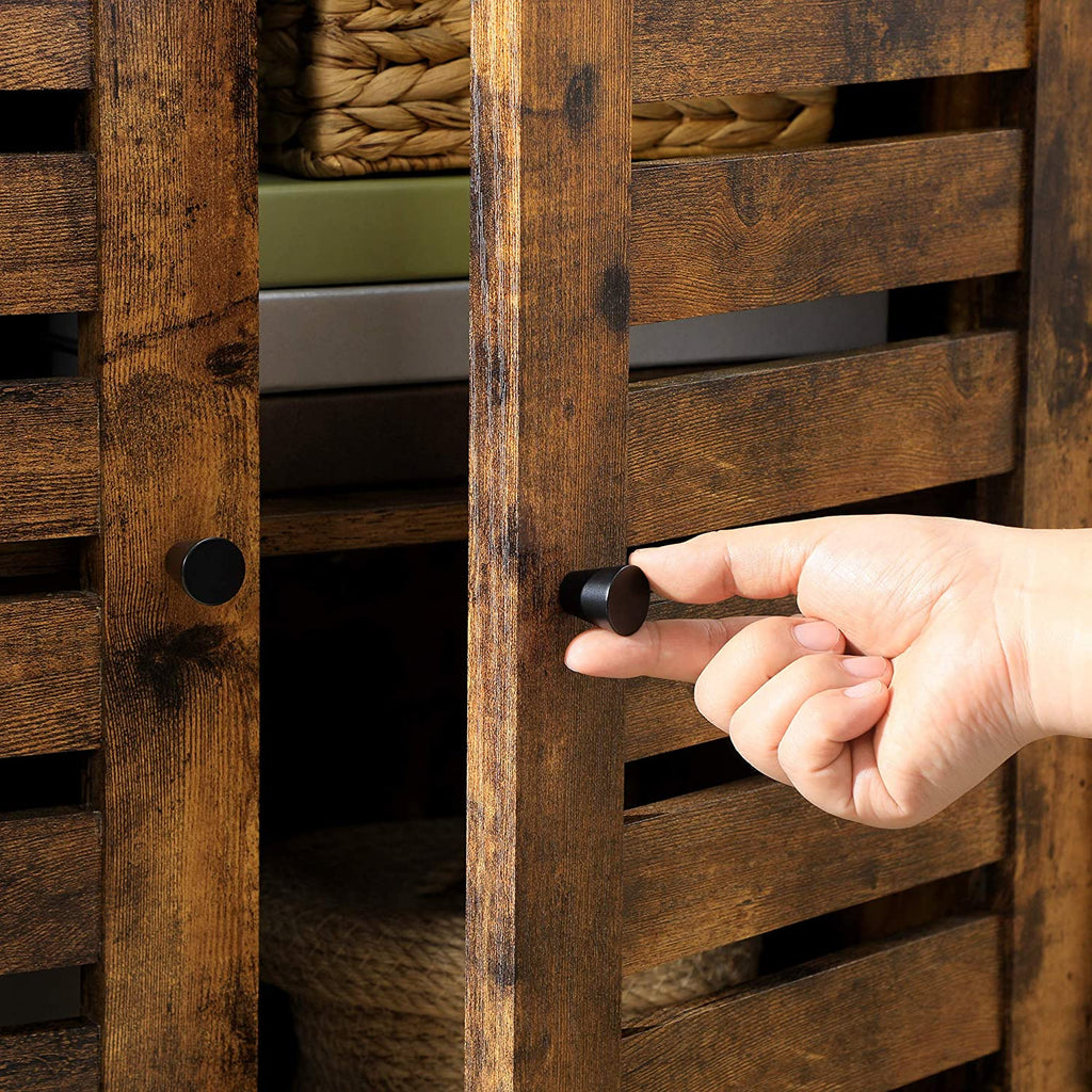 GENTLE PRESSURE: The stylish louvred door of this compact side cabinet opens as if by magic when pressed lightly. Behind it, a height-adjustable shelf offers plenty of storage space for all your secrets