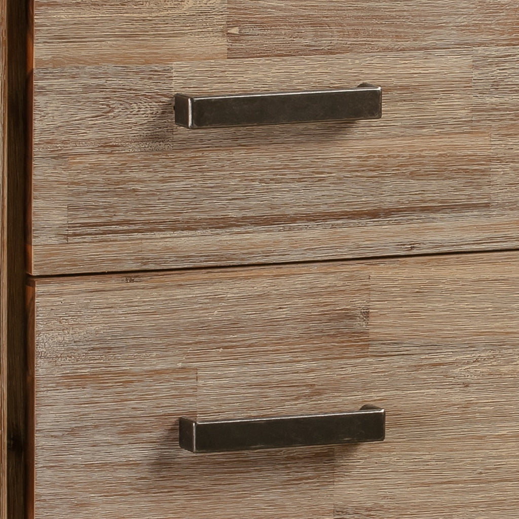 There is a metal made design on the both sides of the tallboy to offer a matching look with the handles. Nonetheless, metal wire brushed finish is given to it for a rustic look.