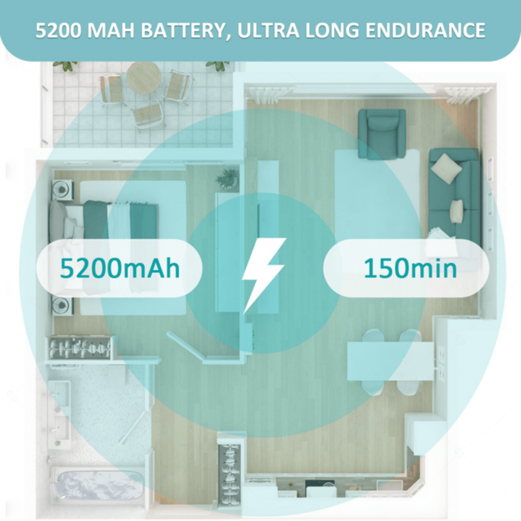 - Max 4000 Pa Suction + 5200 mAh Battery