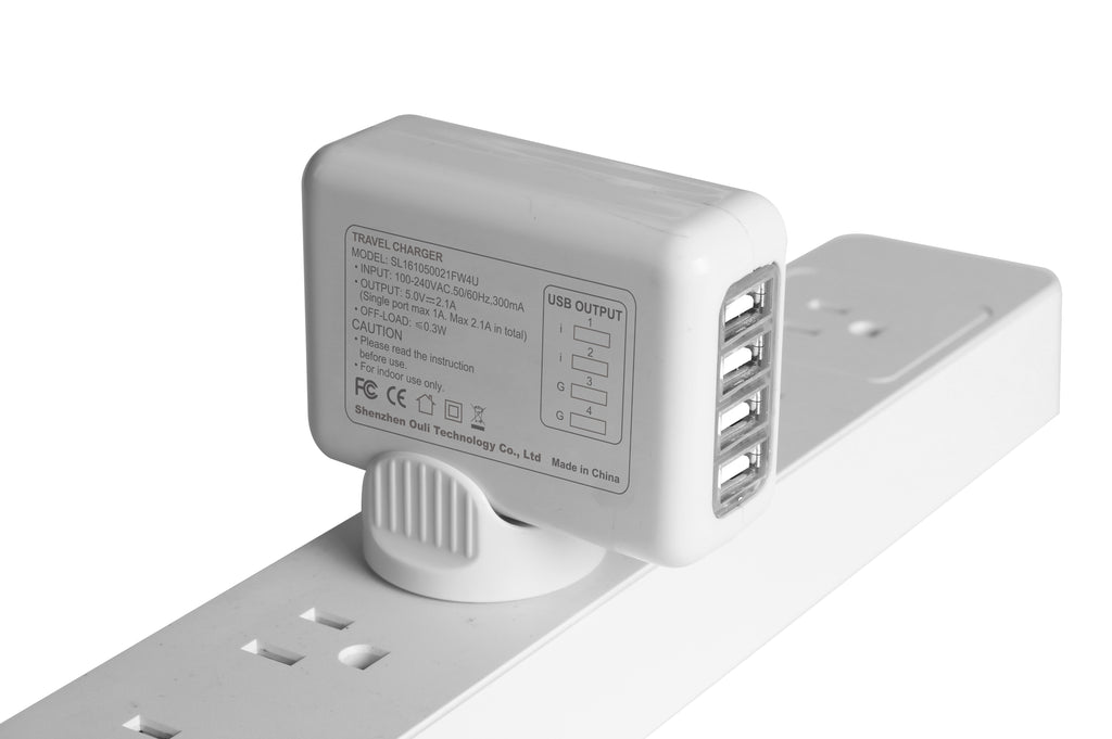 It also provides 4 x inbuilt USB output ports in the main unit that can charge up to four handheld electronic devices simultaneously through just one wall socket, via the charger.