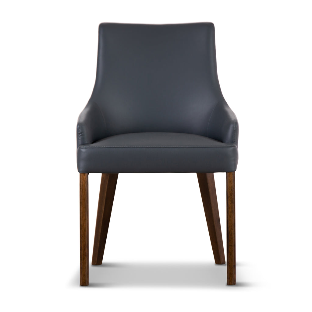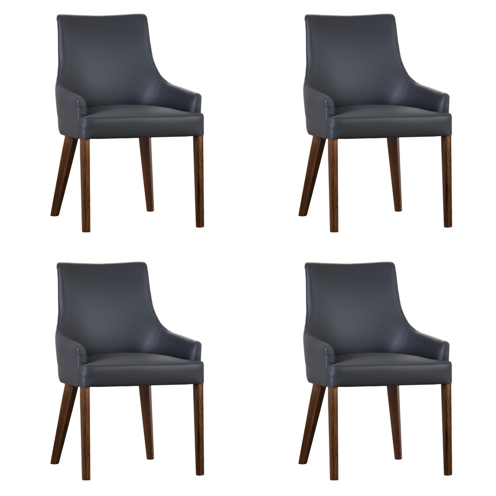 A comfortable dining chair adds to the joy of sharing quality time with family. Smarten up your beautiful dining space with this lovely set of 4 dining chairs, designed in the modern style to feel the joy. The chairs are upholstered in PU leather and have strong, tapered legs. Because of their unique look, they are a beautiful addition to your dining space. They look stunning in all decor settings, thanks to their cozy shape and dark grey colour. Chair legs are made of solid acacia timber, obtained in a sustainable manner. A one-year warranty is included with the fully assembled dining chair set.