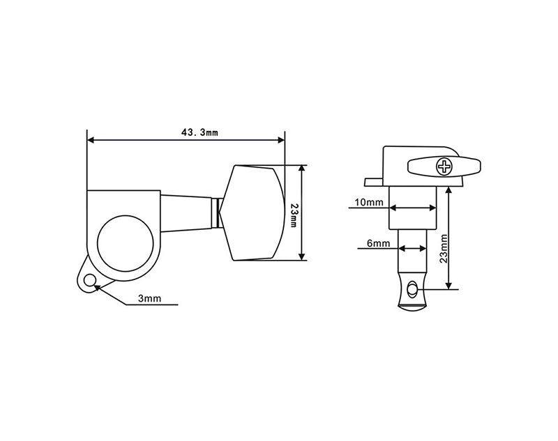 Set of 6 in-line singlechrome diecast machine heads for electric guitars. Turns smoothly at 45è_ for accurate and precise fine tuning tension adjustment. Features encased heavy duty internal gears with sealed lubrication and round vintage buttons.