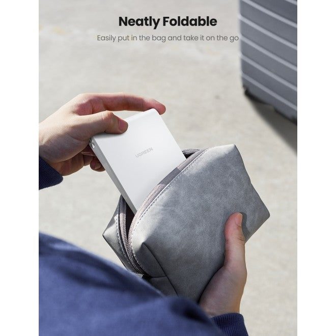 UGREEN cell phone stand for desk can be easily slid upward to lock thus you can place your iphone on an upper and more comfortable viewing angle. When you unlock it and slide it down, this phone holder is quite simple to fold and take for travel.
