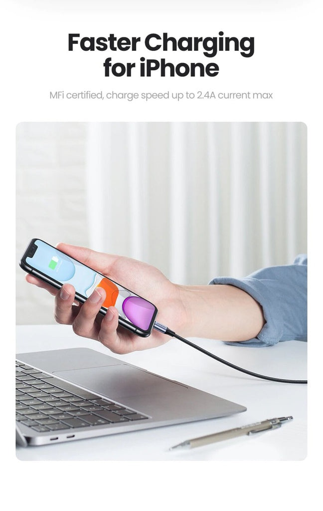 original chip built-in, ensures 100% compatibility of charging and syncing with all 8-pin iOS devices. No warning message or pop-ups. [NOTE] UGREEN iPhone charging cable upgrades simultaneously with the iOS system, build to last.