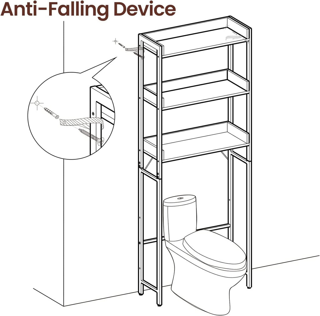 - Industrial Charm: Featuring rustic brown and black colors and clean lines, this over-toilet bathroom organizer with an industrial charm will easily add a unique character to your space