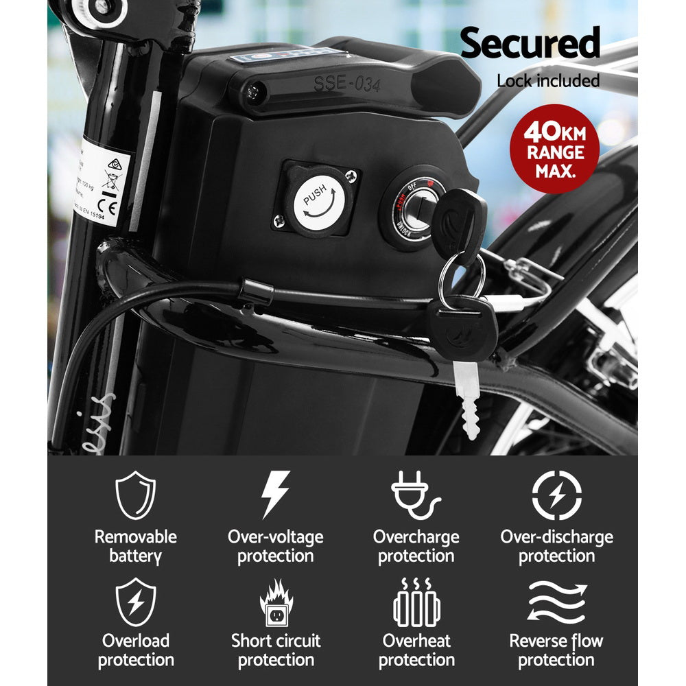 For effortless riding, look no further than our VECOCRAFT Electric Bike. With its 36W 8Ah lithium battery, this astounding electric bike can really go places with up to 40km on a single charge. The ever-dependable 250W brushless motor can deliver a maximum street-legal speed of up to 25km/h for every cycling activity. Built to last, the bicycle features a steel frame that is strong and sturdy. Better still, the frame is foldable, which make it so easy to transport and store. Plus, the electric bicycle is also loaded with a host of useful features that makes riding it a pleasure. Such as the high-quality Shimano 6-speed shifter mated to 20″ tyres for smoother cruising, thick cushioned seat for extra comfort, and front and rear V-brakes for effective braking. The carrier basket and bag rack ensure firm storage, while an LED headlight makes night riding as clear as day.