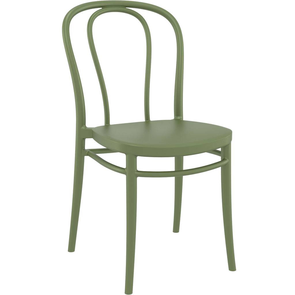 Victor stacking chair is produced with a single injection of polypropylene reinforced with glass fibre obtained by means of the latest generation of air moulding technology with neutral tones. For indoor and outdoor use.
