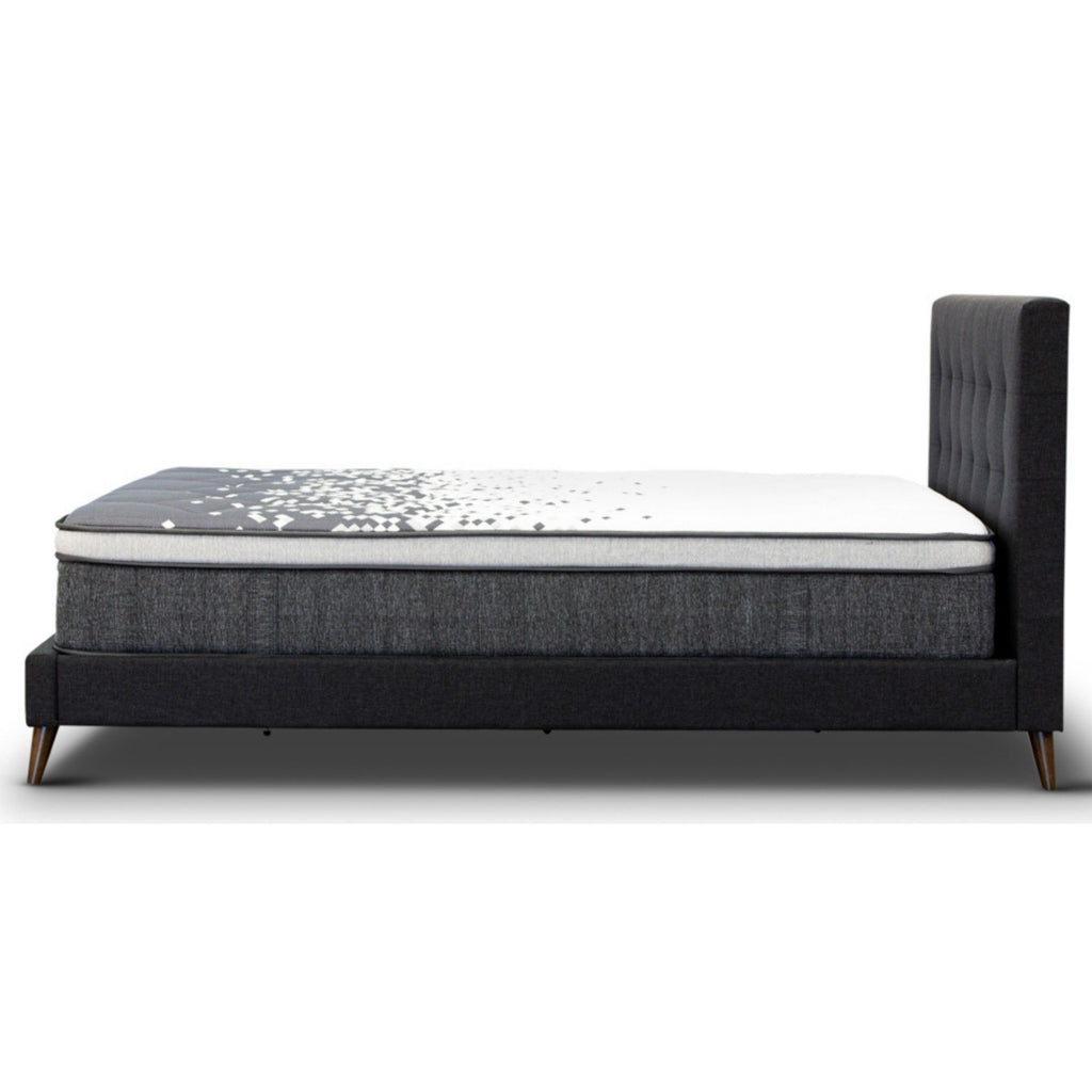 A bed with the best design, good looks, and great materials gives a new dimension to a bedroom. Realize it by placing this queen-size bed here. The bed, designed in the classic style, effortlessly transforms the entire look of your bedroom, turning it into the most luxurious corner of your house.The beautiful bed is made of the right combination of MDF, particle board, and fabric. With sustainably harvested MDF wood, the bed naturally becomes resilient to moisture damage. Special legs in rubber wood, strong plywood slats, and central support provide the bed with toughness and great durability. The slats also give the bed an excellent weight-bearing capacity. The entire bed is upholstered in plush fabric for a smooth feel and lasting comfort. The bed also features a tufted headboard upholstered in premium quality polyester that adds to the good looks of the bed. Not only that, a fine shade of charcoal also gives the bed a distinct appearance that goes well with a variety of interior decor styles. A one-year warranty is included with the bed.