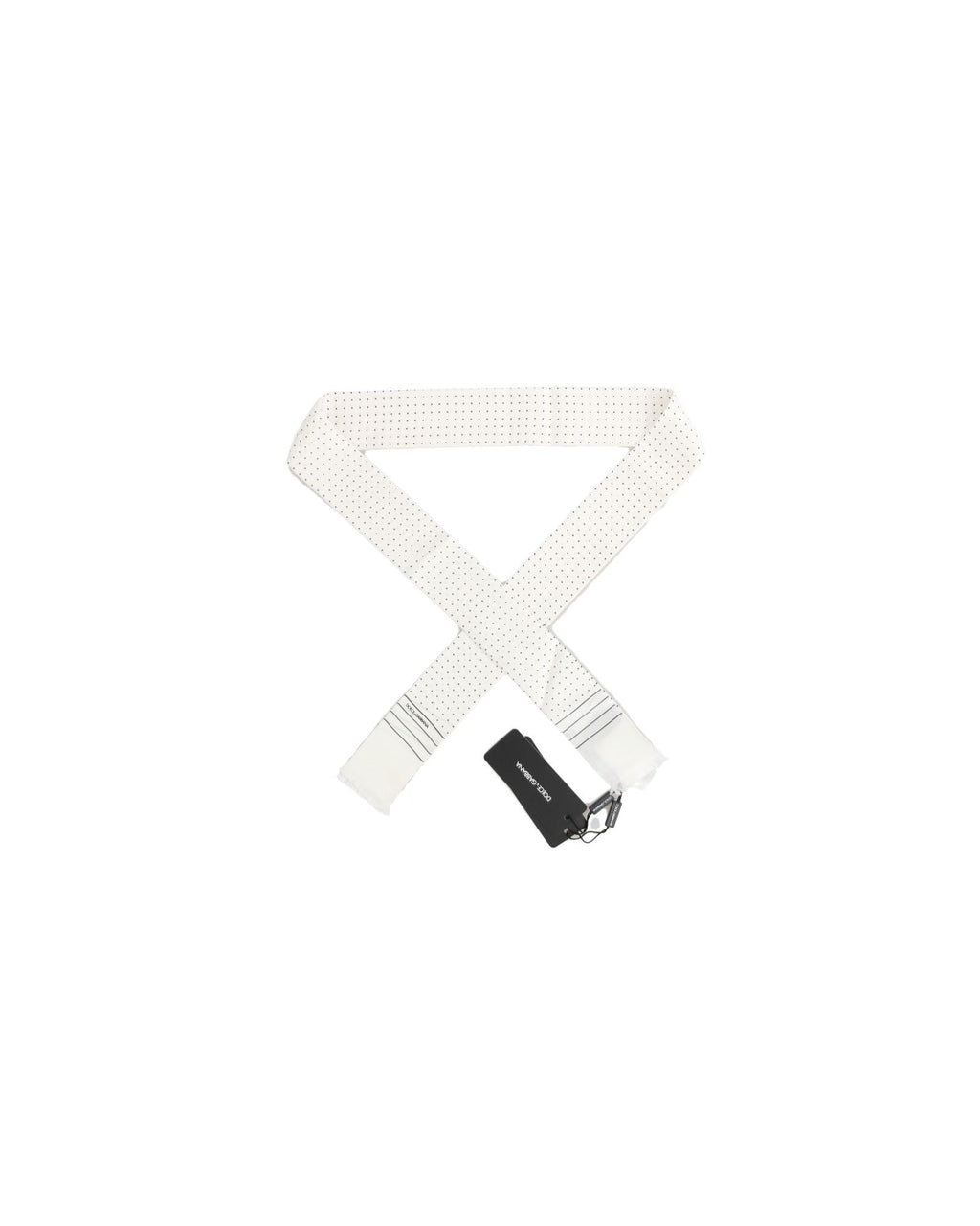 White Silk Mens Tie Scarf Wrap with Polka Dotted Fringes One Size Men